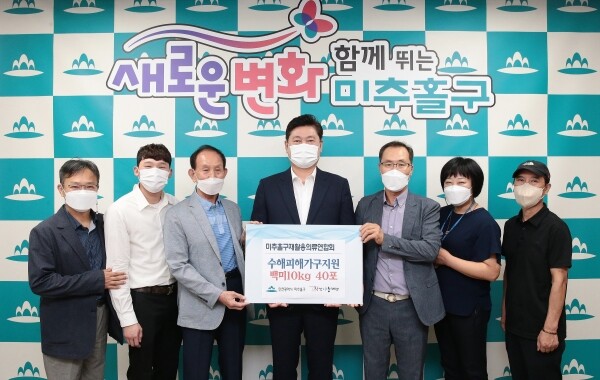 [뉴스써치] 인천 미추홀구 의류재활용환경연합회는 집중호우로 인한 수해피해를 입은 이웃들을 위해 백미 10kg 40포를 미추홀구에 전달했다.