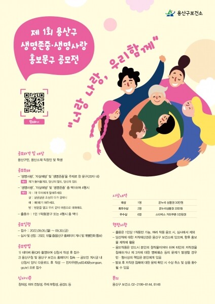 박희영 용산구청장은 “코로나19가 장기화되면서 코로나블루에 이어 코로나레드, 코로나블랙이라는 신조어가 생길 만큼 우울증은 사회적 문제가 됐다”며 “공모전은 물론 구민들의 우울증 예방과 생명존중 분위기를 조성하는데 앞장서 나가겠다”고 말했다.