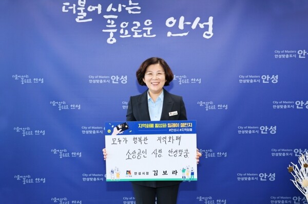 오는 9월 30일부터 10월 3일까지 열릴 ‘2022 안성맞춤 남사당 바우덕이 축제’를 앞두고 지역경제 활성화를 위해 각고의 노력을 펼치고 있는 김보라 시장은 시민들에게 지역화폐 사용을 독려하고 전통시장 및 골목상권을 살리기 위한 이번 챌린지에 동참하면서 페이스북에 ‘모두가 행복한 지역화폐, 소상공인 사랑 안성맞춤’이라는 주제어로 챌린지 사진을 게시했다.