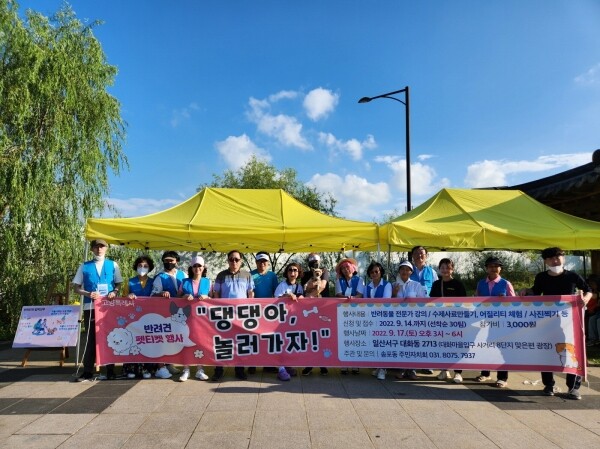 사전 및 현장 신청을 한 반려동물 가족 30여팀이 참가해 전문가 교육 및 퀴즈, 반려동물 놀이터체험, 수제사료 만들기체험, 산책로 플로깅, 폴라로이드 사진찍기 등의 프로그램을 통해 반려동물과 함께 즐거운 시간을 보내며 올바른 반려 문화 정착을 위한 펫티켓 교육을 진행했다.