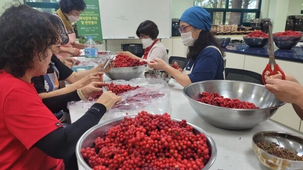 비대면 오미자청 만들기 교육은 포천시생활개선회 회원들의 재능기부로 진행했다.