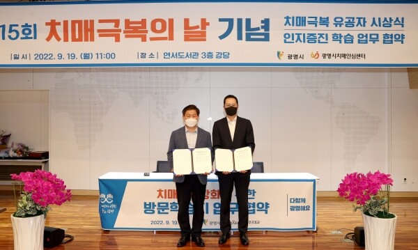 광명시는 19일 연서도서관에서 박승원 시장이 참석한 가운데 치매극복의 날 기념행사를 개최하고 치매 극복 및 치매 관리 사업 발전 유공자 표창 치매 인식 개선 동영상 ‘같이는 가치있다’ 상영 치매 친화 환경 조성을 위한 우수사례 공모사업 ‘치매안심마을 사업’ 설명 등을 진행했다.