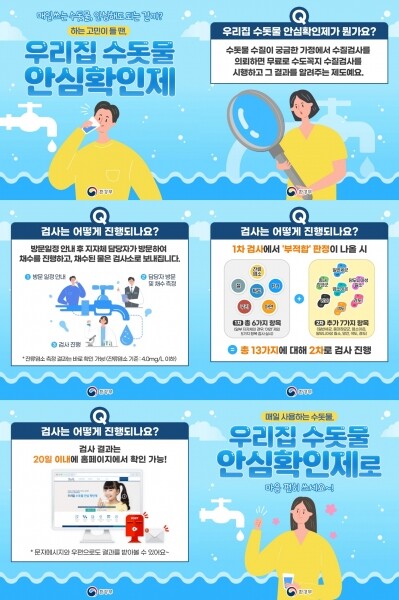 구리시가 2019년부터 운영 중인 ‘우리집 수돗물 안심확인제’는 홈페이지 또는 전화로 신청을 받아 토평정수장 실험실에서 무료로 자체검사를 실시하고 신청일로부터 20일 이내 검사 결과를 홈페이지와 우편물 발송을 통해 알려 수돗물 불신을 해소시켜 주는 제도다.