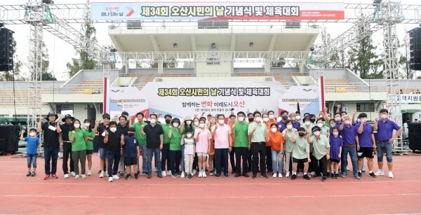 기념식에는 이권재 오산시장, 성길용 오산시의회의장, 안민석 국회의원을 비롯해 자매도시 영동군·순천시 대표단과 시민 등 7천여명이 참석한 가운데 제34회 오산시민의 날을 축하하는 시간을 가졌다.