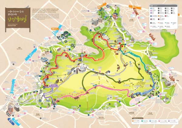 9월 중순에서 10월 초순까지 남산둘레길 북측순환로를 따라 걷다 보면 곳곳에 소규모로 피어있는 꽃무릇을 만날 수 있으며 국립극장 인근 장충유아숲체험원 앞에는) 장엄한 소나무들 아래 군락을 이루어 빨갛게 만개한 꽃을 감상할 수 있다.