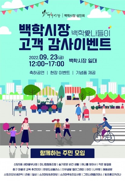 신당5동 백학시장 일대에서 펼쳐지는 이번 행사는 코로나와 경제침체의 여파로 어려움을 겪고 있는 백학시장 소상공인들의 매출 향상을 위해 마련됐다.