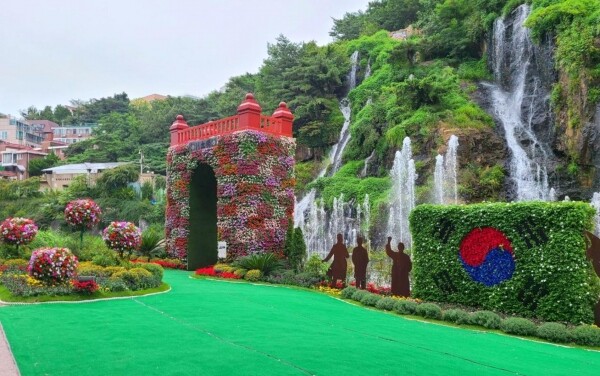 구는 꽃을 활용해 ‘서대문의 역사’ 구간에 독립문 모형과 태극 문양을, ‘서대문의 교육’ 구간에 서대문자연사박물관을 알리는 공룡 모양을 꾸며 놓았다.