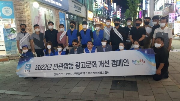 한편 부천시는 민관합동 광고 문화 개선 캠페인을 2022년 3회 실시했으며 오는 11월에도 광역동 생활안전과 및 부천시옥외광고협회와 함께 제4차 캠페인을 실시할 예정이다.