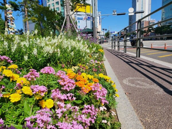 국화, 구절초, 벌개미취 등 가을을 대표하는 꽃 40여종 10,417본으로 녹지대를 다채롭게 수 놓았고 873개의 걸이화분으로 가로변을 장식했다.