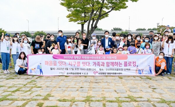 또한, 가족 단위로 양평파크골프장과 강상체육공원의 산책로를 걸으며 쓰레기를 줍는 플로깅 활동을 진행했다.