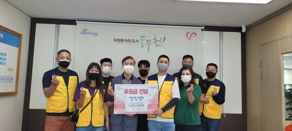 이날 성금은 한우리 청년 봉사단체가 3일 동안 물품을 팔아 모은 것으로 자원봉사센터에서는 기탁한 성금을 천사운동본부에 바로 연계해 전달식을 진행했다.