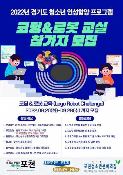 대상은 포천시 거주 13세~16세 청소년들로 총 16명을 모집하며 신청은 포천청소년문화의집 홈페이지 청소년활동란에서 선착순으로 접수한다.
