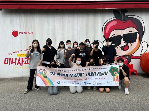 포천시가족센터와 연계해 실시한 인성함양활동은 지난 5월부터 9회기에 걸쳐 청소년미술집단상담으로 자기 이해와 타인을 존중하고 배려하는 방법을 배웠으며 마지막 10회기에는 사과 농장 야외나들이 체험을 진행했다.