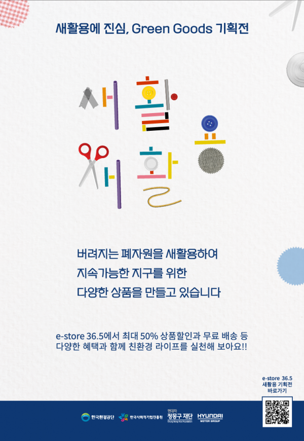 관람객들은 전시장 곳곳에 비치된 큐아르 코드를 통해 이스토어 36.5에 접속하면 30% 이상 할인된 가격으로 새활용 제품을 구매할 수 있다.