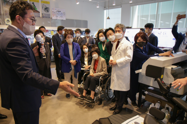 보건복지위원회 위원들은 보행로봇, 상지로봇 등 재활로봇을 이용해, 장애인에게 맞춤형 전문 재활치료 서비스를 제공하고 있는 재활로봇치료실을 방문해, 국내 재활로봇 보급현황과 시장 활성화를 위한 현장의 목소리를 청취했다.