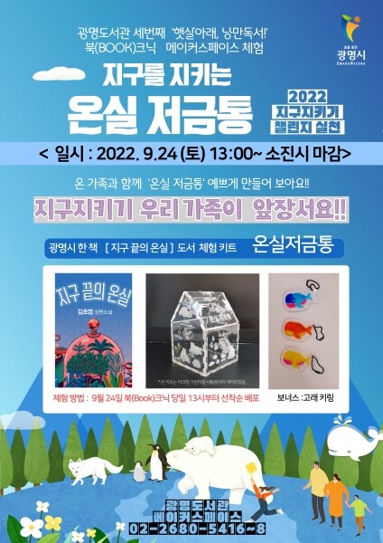광명도서관 관계자는 “온실 저금통을 만들면서 환경의 중요성을 가족과 함께 나누고 저금통에 기부금을 모아 환경단체 기부하며 지구 지키기를 실천할 수 있는 이번 체험에 많은 참여 바란다”고 전했다.