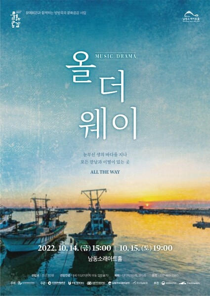 [뉴스써치] 남동소래아트홀은 뮤직드라마 ‘올 더 웨이’는 ‘연안부두’, ‘이별의 인천항’ 등 작품의 배경인 인천과 관련된 노래는 물론 ‘푸르른 날‘, ’젊음의 노트‘ 등 추억의 히트곡과 ’올 더 웨이‘라는 창작곡 등 관객의 귀를 즐겁게 해 줄 다양한 장르의 18곡의 넘버를 기반으로 한 주크박스 형태의 공연으로 초연 작품임에도 부담없이 몰입할 수 있으며 세련된 편곡으로 젊은 세대들의 취향도 만족시킬 것으로 기대된다.