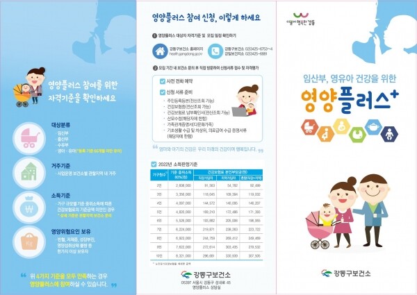 강동구에 거주하는 가구별 기준중위소득 80% 이하 임신부, 출산·수유부, 영유아라면 누구나 신청이 가능하다.