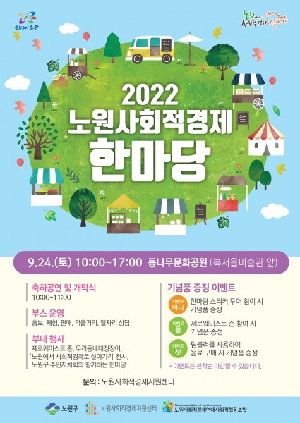 사회적경제 한마당은 중계 등나무문화공원에서 오전 10시부터 오후 5시까지 운영한다.