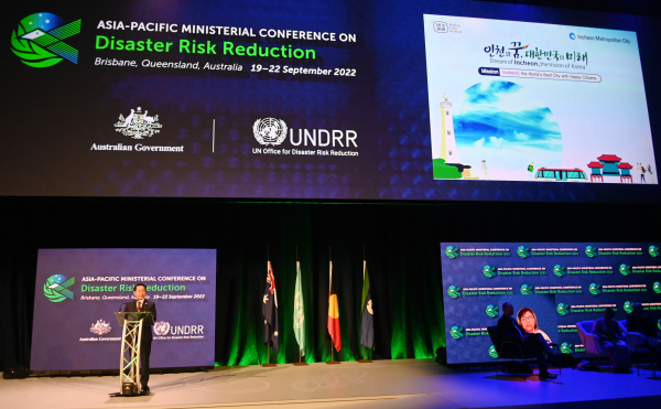 인천광역시는 유정복 시장이 9월 21일 UNDRR 주최로 호주 브리즈번에서 열리고 있는 ‘제9차 아시아·태평양 재난위험 경감 각료회의’에서 도시복원력 세션에 참석해 연사로 발표를 했다고 밝혔다.