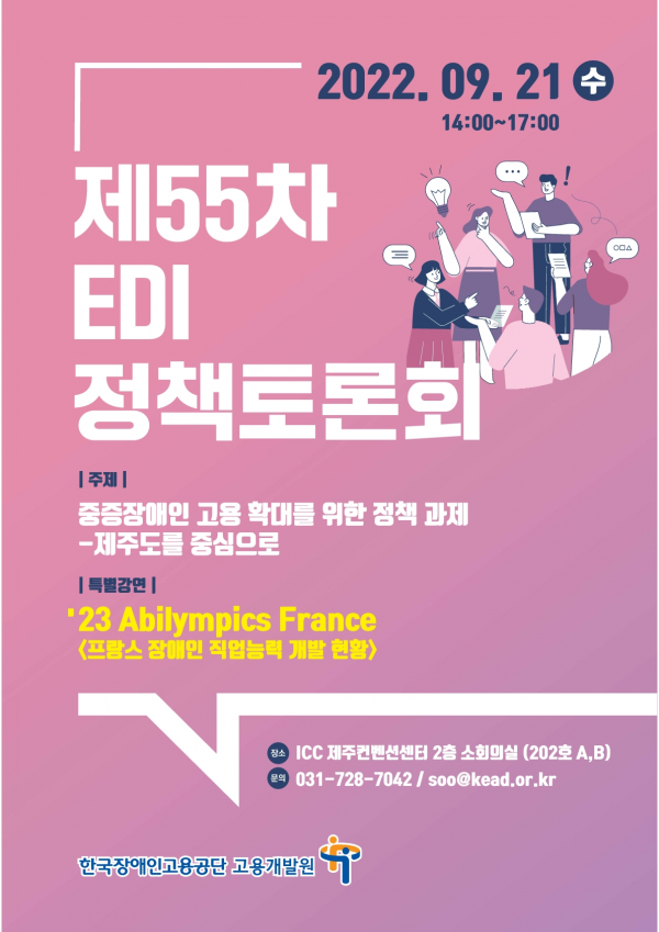 이번 정책토론회는 강석봉 제주특별자치도 장애인복지과장 등 제주지역 장애인 고용 전문가가 토론자로 참석해 중증장애인 고용 확대를 위한 심도 있는 토론을 펼쳤다.