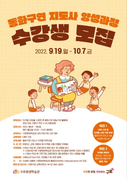 강의내용은 동화구연이론과 실습, 손유희 등으로 구성되며 수강료는 무료다.