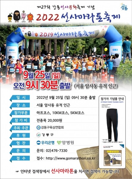 이수희 강동구청장은 “선선해진 가을, 선사마라톤에 함께 하셔서 한강변을 따라 달리며 새롭게 조성될 암사역사공원의 미래도 응원해 주시길 바란다”며 “조만간 개최되는 제27회 강동선사문화축제에도 가족과 함께 꼭 방문하셔서 즐거운 시간 보내시길 바란다”고 전했다.