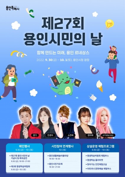 특히 올해는 용인특례시 출범 원년을 축하하기 위해 용인시민가요제, 용인생활예술어울마당, 평생학습박람회 등 다채로운 행사도 함께 진행된다.
