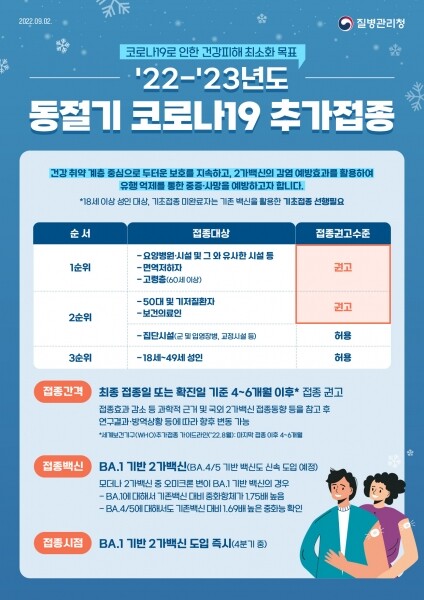 기존 차수 중심 접종력 표기와 달리 2가 백신부터는 ‘동절기 추가접종’으로 표기될 예정이며 18세 이상 기초 접종완료자의 경우 최종 접종 차수 관계없이 마지막 접종일로부터 4개월 경과 시 2가 백신을 접종할 수 있다.