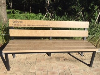 올해 성북구 공유촉진 공모사업에 선정된 업체 중 하나인 ㈜세진플러스는 관내 봉제공장에서 버려지는 폐 섬유를 활용, 벤치를 제작해 관내 공원에 설치하는 사업으로 사업비 4백만원을 지원받아 지난 7일 오동근린공원 내 숲속도서관 앞 공원에 등받이 벤치 5개를 설치했다.