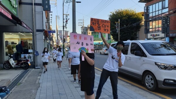 환경보호 거리캠페인에서는 청소년들이 직접 만든 티셔츠를 입고 직접 만든 피켓을 들고 가평읍의 중심가를 돌며 환경보호에 대한 메시지를 전달했으며 이어서 진행된 플로깅 활동을 통해 청소년들이 매일같이 다니는 거리에 있는 쓰레기를 주우며 환경보호를 몸소 체험했다.