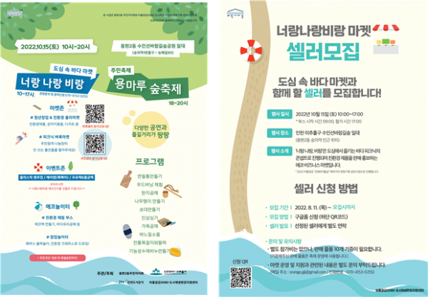 주민공동체 활성화를 위해서 용현2동 주민자치회가 추진하는 ‘용마루 숲축제’와 함께 진행되며 친환경제품 판매와 자원순환 활동에 대한 체험공간을 숭의역 바람길 숲에 마련한다고 밝혔다.