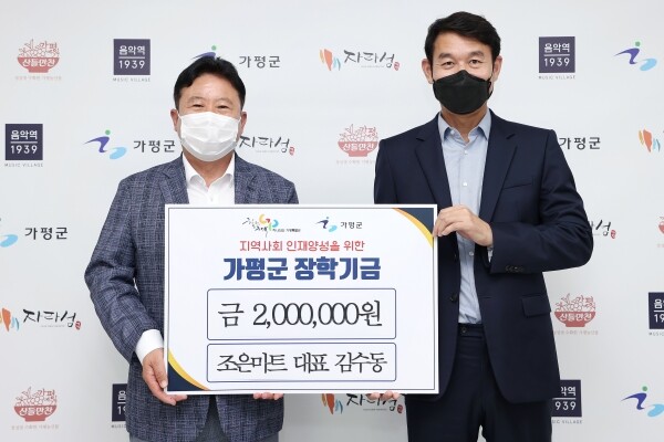 지난 22일 조은마트 김수동 대표는 가평군청을 방문, 가평군에 장학금 200만원을 전달했다.