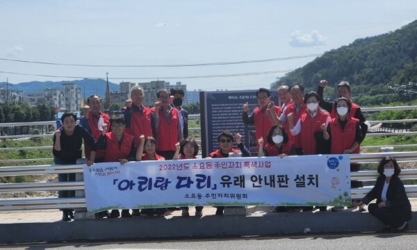 권용선 주민자치위원장은 “아리랑 다리 안내판이 소요동을 방문하는 많은 관광객들에게 마을 역사를 안내하고 잊혀져 가는 마을 유래에 대한 소개를 할 수 있어 그 의미가 크다”며 “본 사업의 호응도에 따라 소요동 관내 역사 유래에 대한 지명이나 시설을 적극 발굴해 추가 설치를 할 계획이라고 전했다”고 전했다.