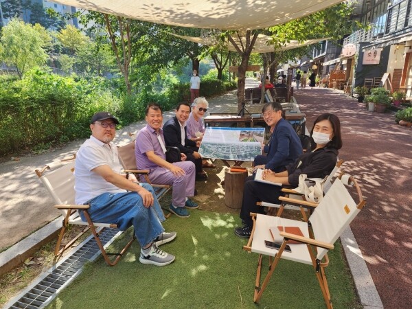 특조금 확보 후 23일 이 의원은 최종현 카페거리 발전협의회 회장, 지역 주민, 조흥연 영통구 녹지과장 등 관계자와 함께 광교 카페거리 현장을 직접 확인했다.
