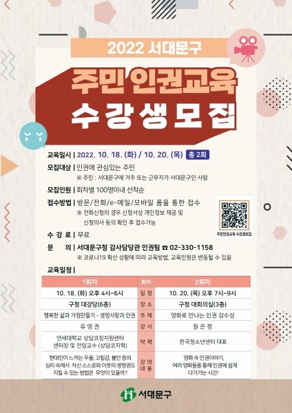 이성헌 서대문구청장은 “이번 교육이 일상 속에서 인권의 눈으로 이웃을 돌아볼 수 있게 하는 계기가 되길 바라며 지역사회 내 인권 친화 문화 확산을 위해 힘쓰겠다”고 말했다.