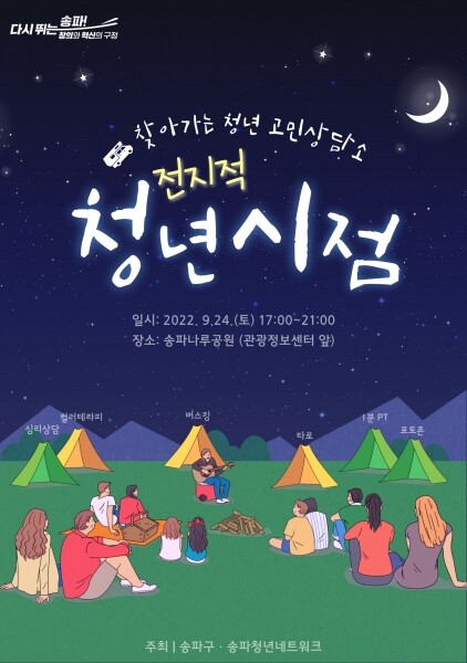 이밖에도 현장을 찾은 청년들과 구민들을 위해 석촌호수 동호 수변무대에서 피아노 싱어송라이터, 랩공연 등 청년아티스트들의 버스킹 공연이 열리고 자신만의 개성을 발휘할 수 있는 포토존이 행사장 곳곳에 설치될 예정이다.