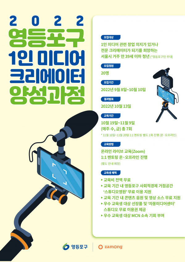 구는 서류심사 등을 거쳐 10월 13일에 합격자를 발표하며 교육생 선발 시 영등포구민 또는 영등포구 교육 수료생을 우선 선발할 예정이다.