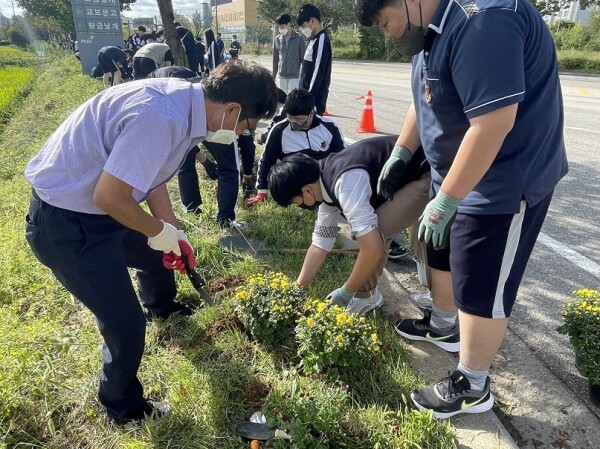 이날 행사에는 주민자치회, 파주읍 직원, 세경고등학교 2학년 학생 및 교직원 등 약 300여명이 참여해 도로변 잡초를 제거하고 가을꽃을 심어 향기 나는 거리 만들기에 힘썼다.