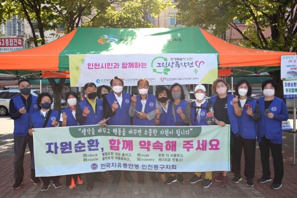 한국자유총연맹 동구지회 회원 10여명은 동구자원봉사센터와 함께 부채와 시장바구니 1,200개를 배부하며 일회용 비닐봉투 사용하지 않기, 에너지 절약하기 등 자원순환 실천을 위한 캠페인을 펼쳤다.