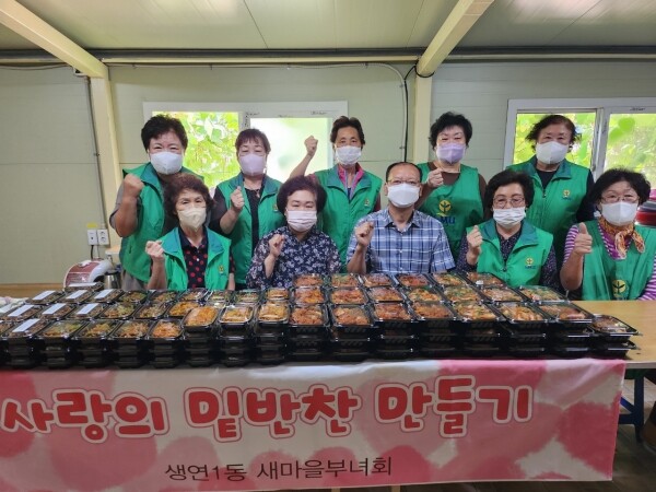 이날 부녀회 회원들은 아침 일찍부터 참여해 북어찜, 배추김치, 고사리무침, 꽈리고추볶음, 오이지 등 정성스럽게 밑반찬을 준비했으며 마스크 착용, 손 소독 등 방역수칙을 철저히 지키며 결연을 맺은 30여 가구를 방문해 전달했다.