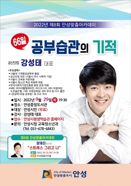한편 오는 10월 12일에는 양재진 의사의 ‘스트레스 그리고 나’를 주제로 2022년 안성맞춤 아카데미 마지막 강연이 진행될 예정이다.