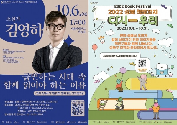 ‘2022 성북 책모꼬지 다시-우리’는 10월 4일 성북구 길음뉴타운에 소재한 성북미디어문화마루 꿈빛극장에서 성북구 주민이 직접 뽑은 올해의 한 책 선포와 축하공연으로 시작한다.