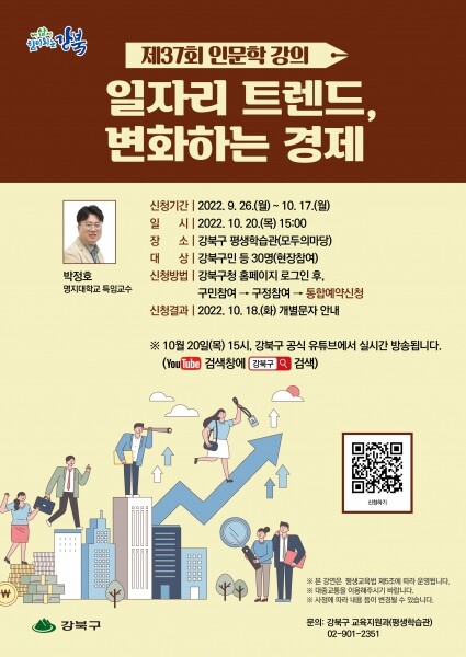 강의는 10월 20일 오후 3시 강북구 평생학습관에서 박정호 명지대학교 특임교수가 진행한다.