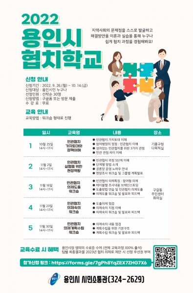 다음달 25일부터 11월30일까지 총 5차례 운영되며 참여를 원하는 시민은 포스터 속 참여링크에 접속하거나 시 시민소통관 시민협치팀으로 방문하면 된다.