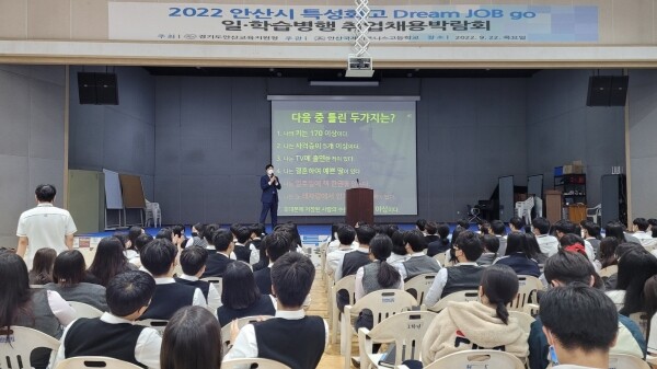 안산교육지원청과 관내 6개 특성화고가 함께 개최한 이번 박람회는 산업현장에서 일과 학습을 병행하며 학위를 취득하는 ‘대학연계형’ 채용 방식으로 진행됐다.