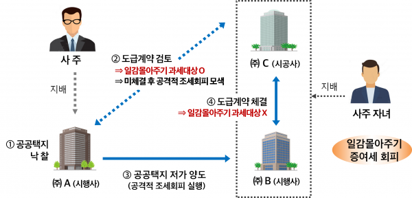 공정경쟁을 훼손하는 벌떼입찰로 공공택지를독점하고사주 자녀지배법인에게택지를저가양도하거나 건설용역을 부당지원해 이익을 독식한 탈세혐의자 사주가 우월적 지위에서 주주 비례 권한을 남용하며 법인자산을 사유화하고 기업이익을 편취해 호화·사치 생활을 누리는 탈세혐의자 경제적 합리성이 없는 사업재편 등 변칙 자본거래로 경영권을 승계하고 자녀 지배법인에게 통행세를 제공하면서 능력 아닌 편법으로 부를 대물림한 탈세혐의자 앞으로 국세청은 세무조사 감축 기조를 유지하면서 적법절차와 적법과세를 세무조사 관행과 문화로 정착시키고 공정경쟁과 국민통합을 저해하는 불공정 탈세혐의자에 대해서는 조사역량을 집중해 엄정 대응해 나가겠다고 전했다.