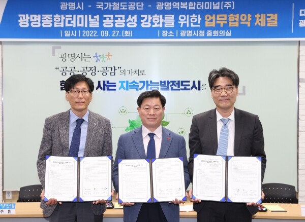 이날 협약식에 참석한 박승원 광명시장은 “시민들의 편리하고 안전한 생활을 위해서는 주민 편의를 위한 공공시설이 확보되어야 한다”며 “앞으로 지역주민의 더 나은 삶을 위해 주민들과 소통하고 국가철도공단, 광명역복합터미널와 긴밀히 협력해 나가겠다”고 밝혔다.