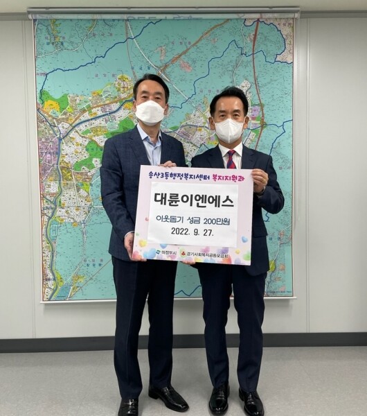 ㈜대륜이엔에스는 2016년부터 의정부시와 송산권역을 통해 매년 이웃돕기 성금을 기탁하고 있으며 100일간 사랑릴레이 배턴잇기 참여를 비롯해 연탄나눔 봉사 등 다양한 사회 공헌 활동을 실천하고 있는 것으로 알려져 있다.