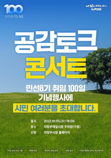 본 행사는 민선 8기 취임 100일을 맞아 그간의 행보를 시민과 공유하고 살고 싶은 의정부를 만들기 위한 시민의 목소리를 듣는 시간으로 진행할 계획이라고 전했다.